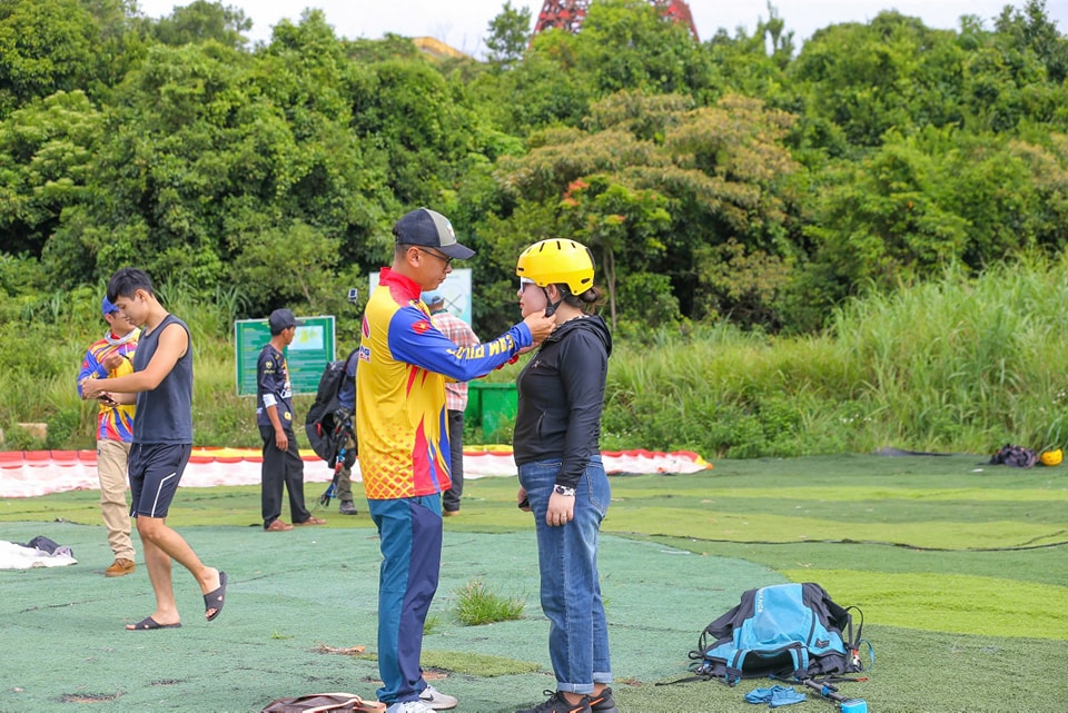 - Anh Nguyễn Duy Thanh, tổng giám đốc công ty, hay còn được mọi người thân mật gọi bằng biệt danh “thầy chùa” vì cái đầu trọc đặc trưng, là một gương mặt quen thuộc trong cộng đồng bay dù. Phong cách bay của anh nhẹ nhàng, uyển chuyển, rất phù hợp với các chị em mới làm quen với trải nghiệm này. Không chỉ gây ấn tượng bởi kỹ thuật bay tinh tế, anh Thanh còn ghi điểm nhờ cách nói chuyện nhỏ nhẹ, gần gũi và luôn nhiệt tình hỗ trợ mọi người. Sự ân cần và thái độ chuyên nghiệp của anh khiến cho những buổi bay cùng anh luôn tràn đầy sự an tâm và niềm vui.